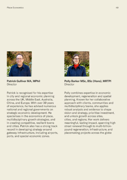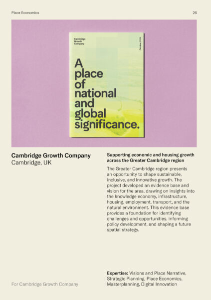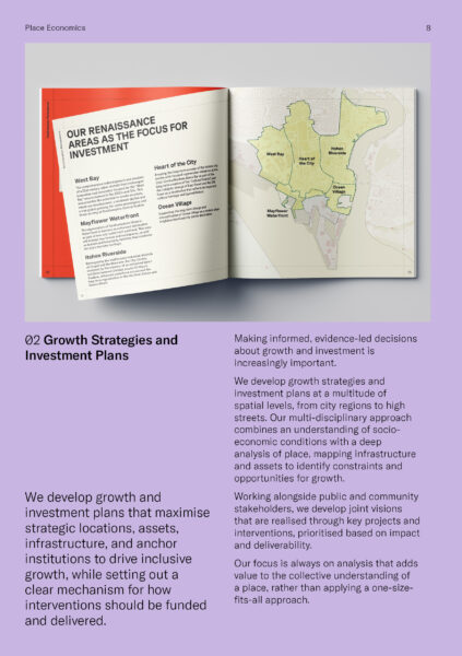 - Growth Strategies and Investment Plans: Developing evidence-led strategies and investment plans at multiple spatial scales, from city regions to high streets, identifying constraints and opportunities for growth and prioritising interventions based on impact and deliverability;