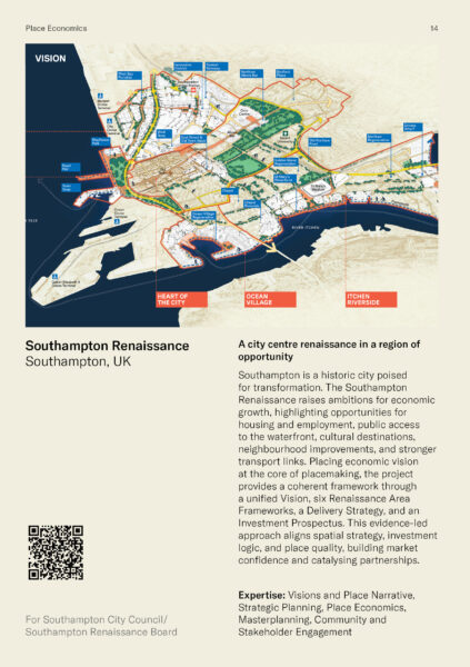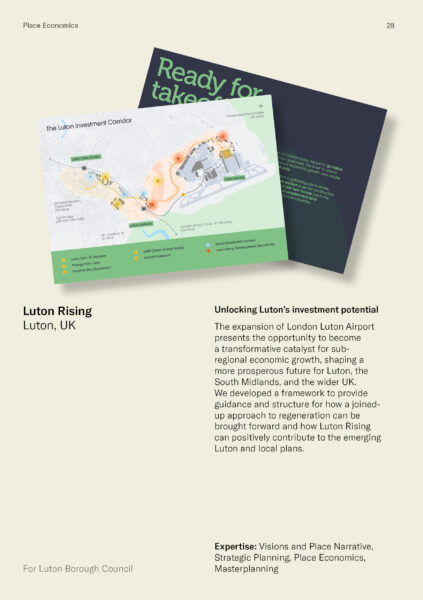 Across the UK, this work has included delivering the Southampton Renaissance for Southampton City Council – developing a unified vision, six Renaissance Area Frameworks, a delivery strategy, and an investment prospectus – placing economic vision at the core of placemaking. We have also provided integrated support on aspects of the wider East West Rail project to help create resilient, connected communities; maximised inward investment and economic growth in the offshore energy sector for Great Yarmouth Borough Council at South Denes; and unlocked Luton’s investment potential with Luton Rising as a catalyst for sub-regional economic growth.